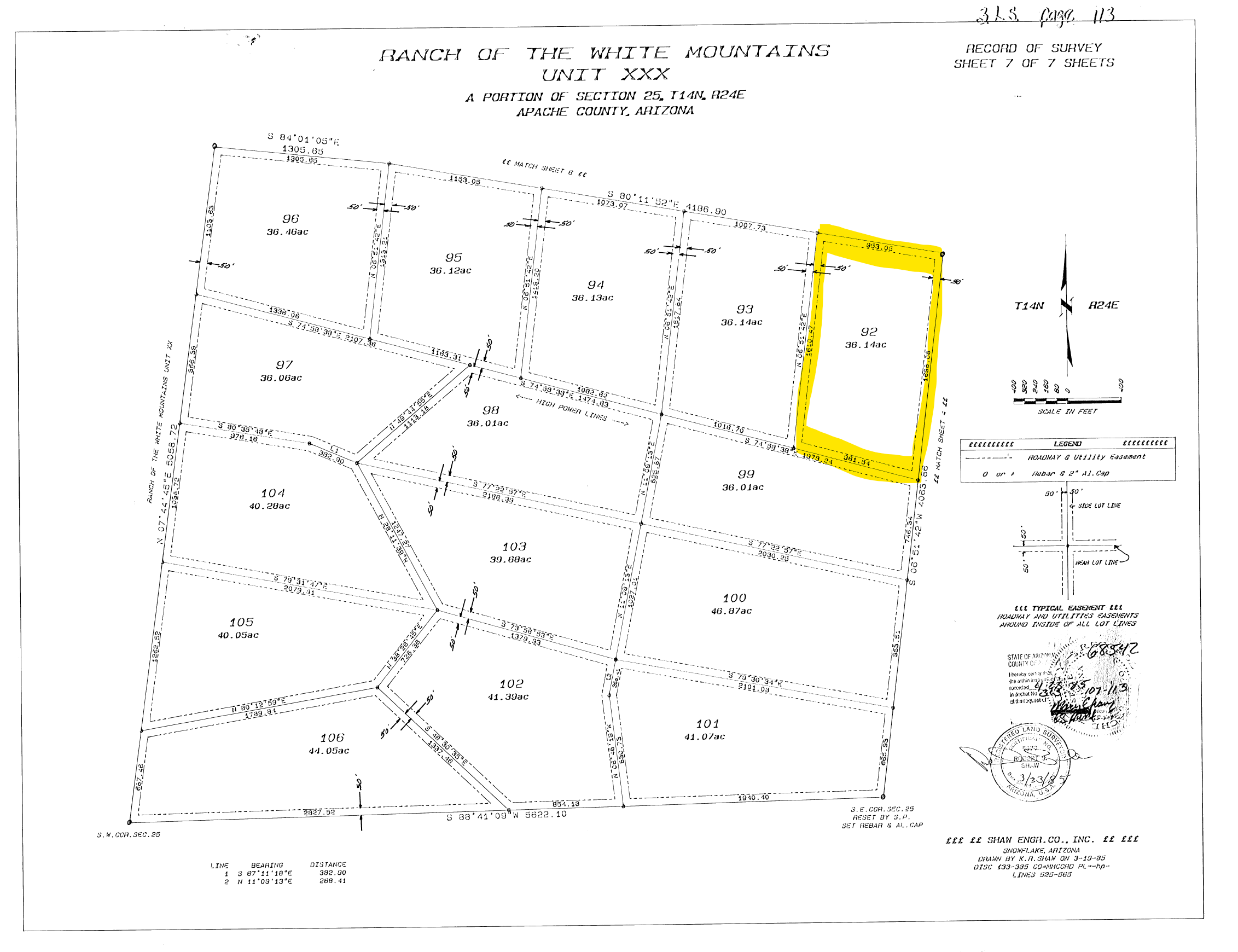 Legal Description: Tract 92, RANCH OF THE WHITE MOUNTAINS UNIT XXX, being a portion of Section 25, Township 14 North, Range 24 East, Apache County, Arizona