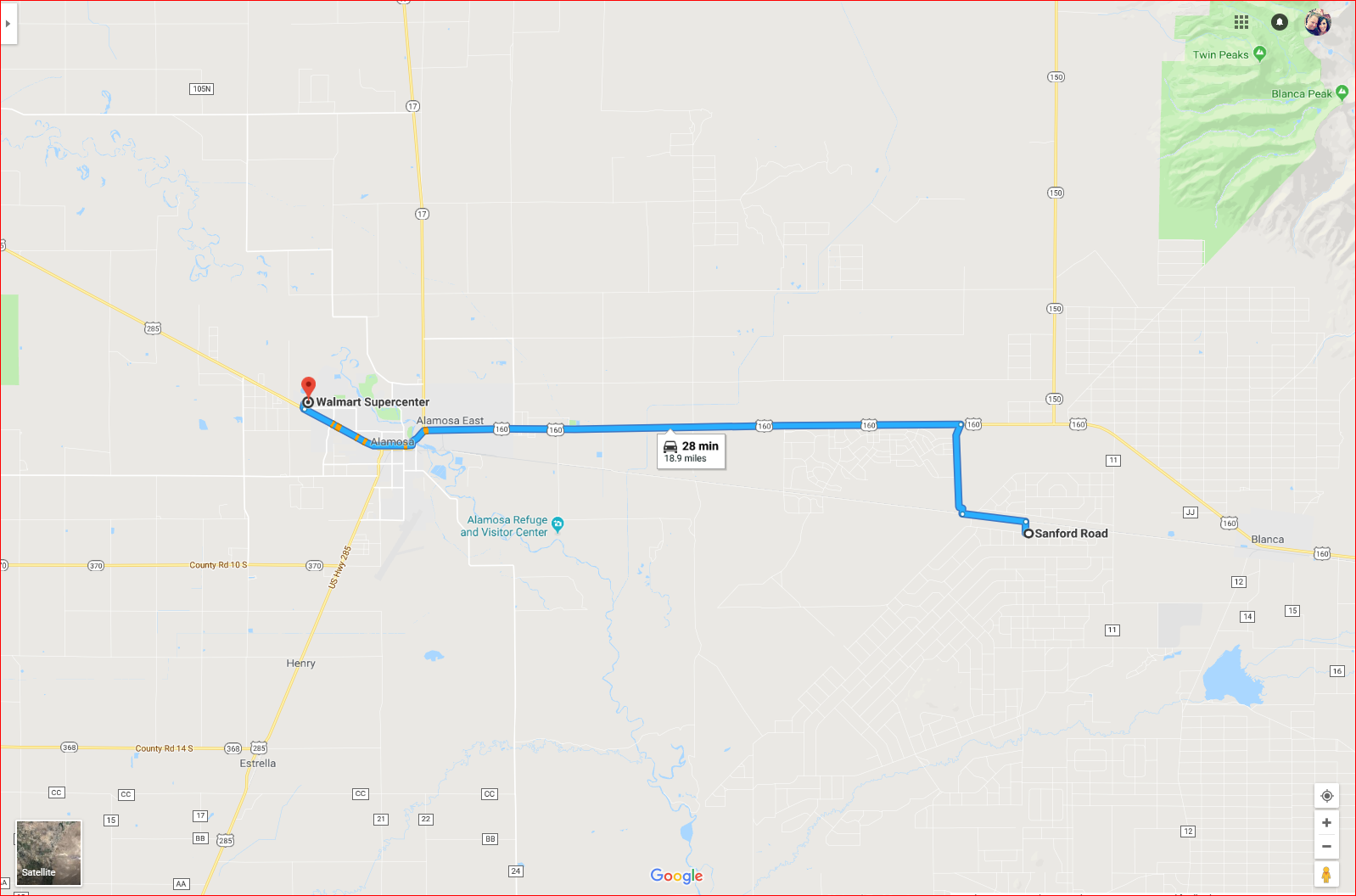 - 19 miles to the nearest Walmart in Alamosa (34 minutes)